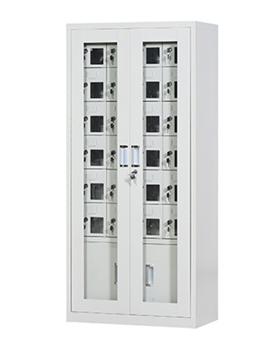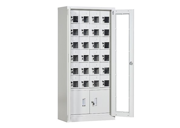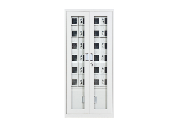 手機保密柜正面為對開金屬邊框玻璃大門,便于觀察柜內情況,堅固透亮,美觀大方。