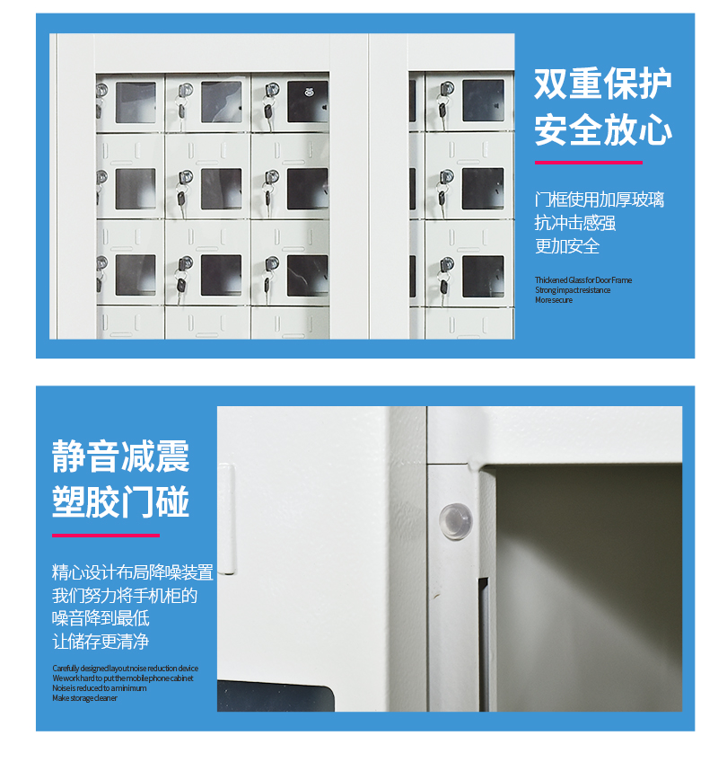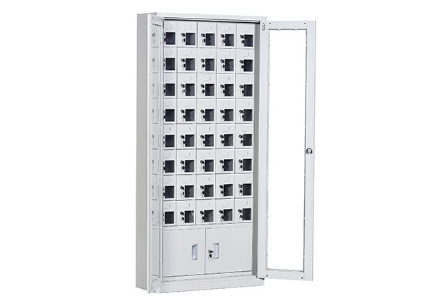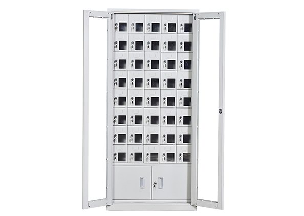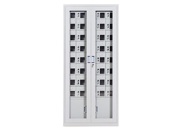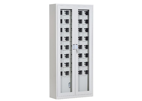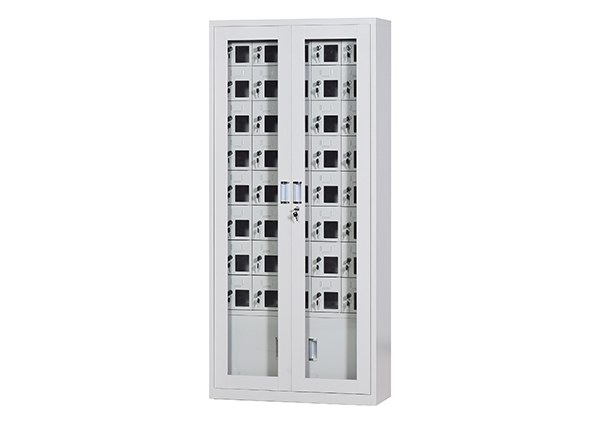 手機(jī)保密柜正面為對(duì)開金屬邊框玻璃大門,便于觀察柜內(nèi)情況,堅(jiān)固透亮,美觀大方。